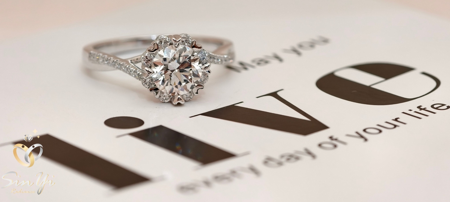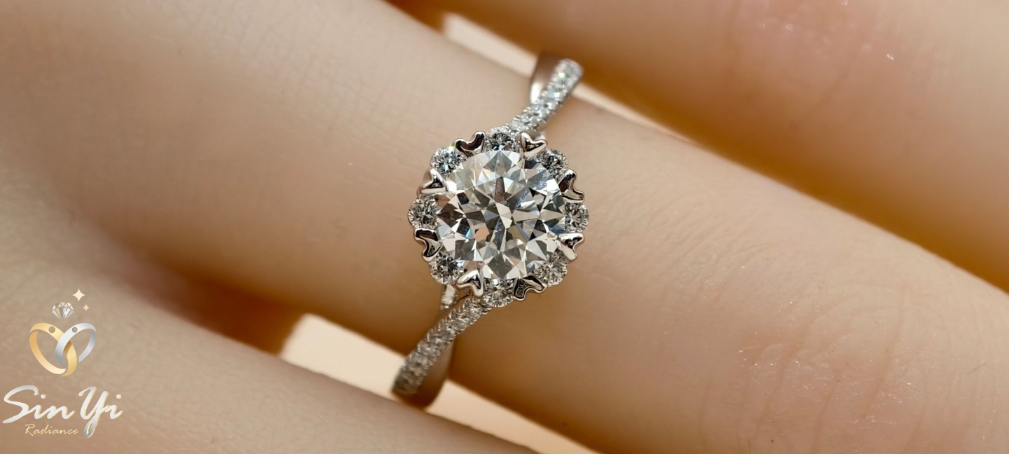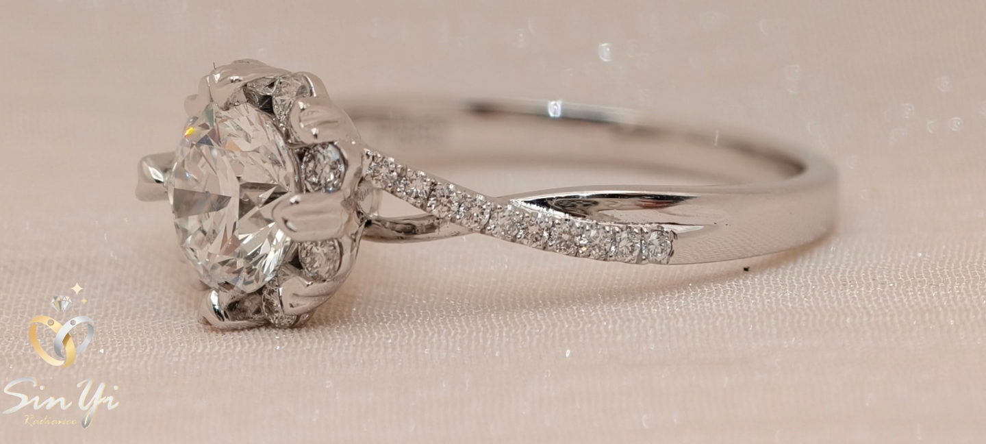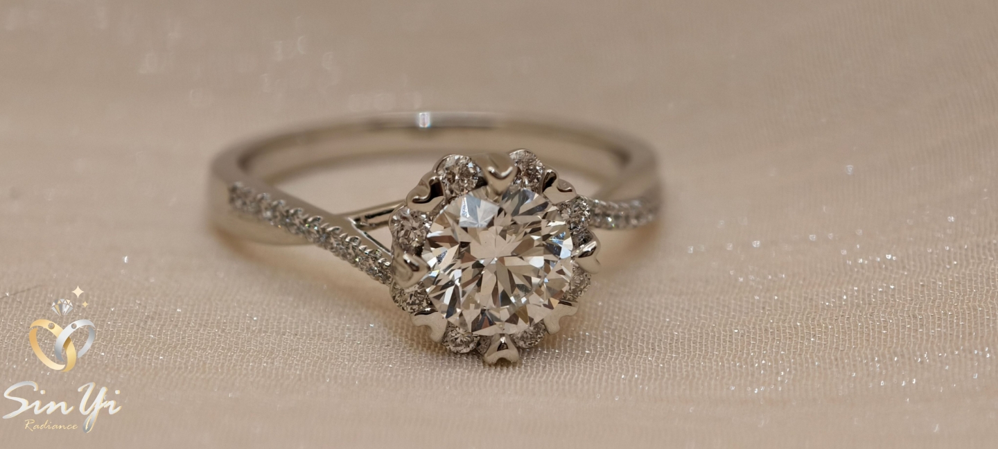 如花冠般環繞的光芒, 襯托中央圓鑽的純粹閃耀。 細緻群鑲設計,讓光線層層折射, 低調卻難以忽視的優雅存在。