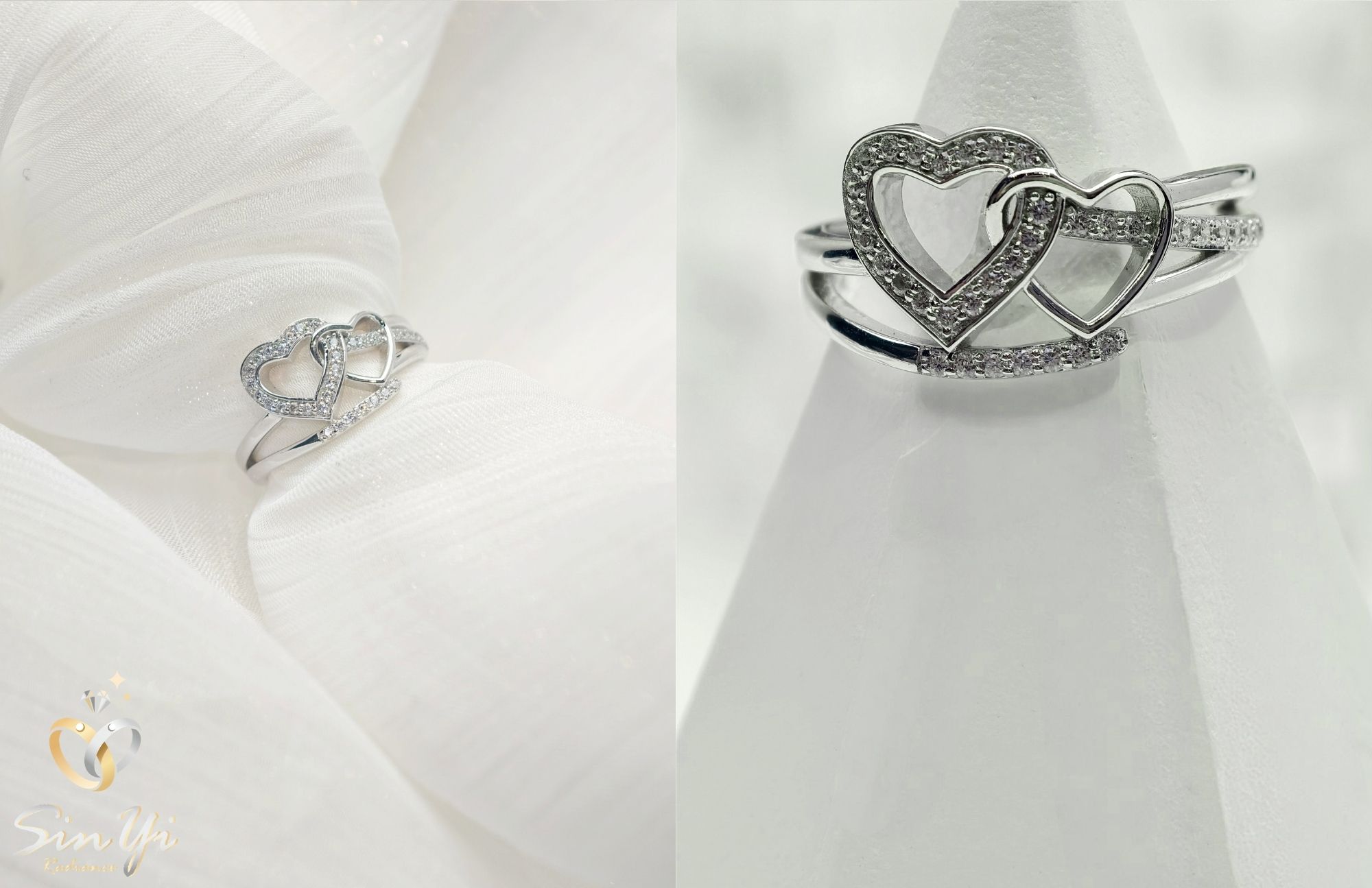 兩顆愛心緊密相扣,象徵彼此真摯的連結與永恆的約定。 每一處曲線都經過精緻打磨,柔中帶剛,閃耀愛情最純粹的光芒。