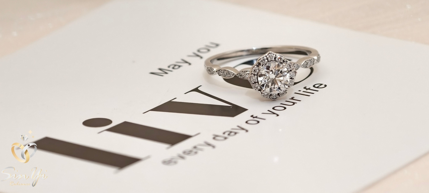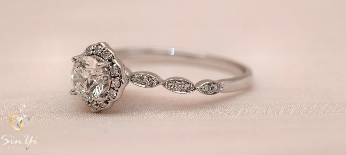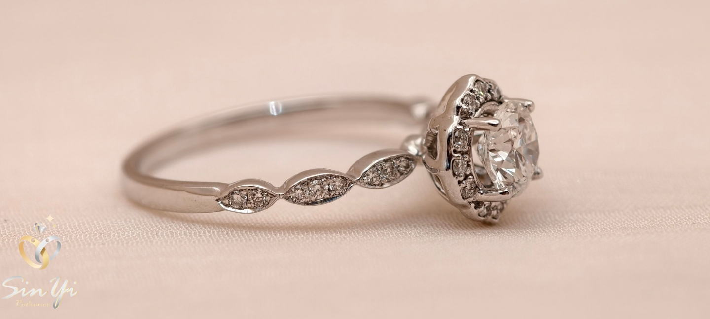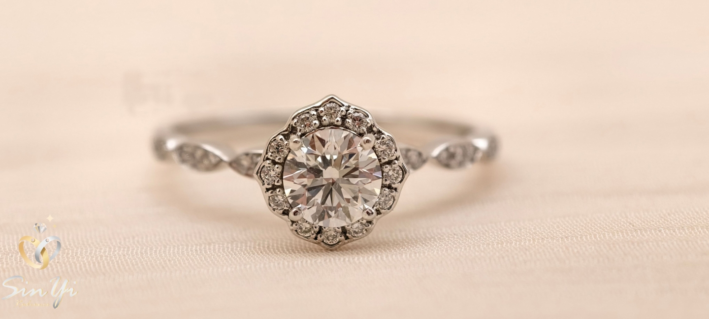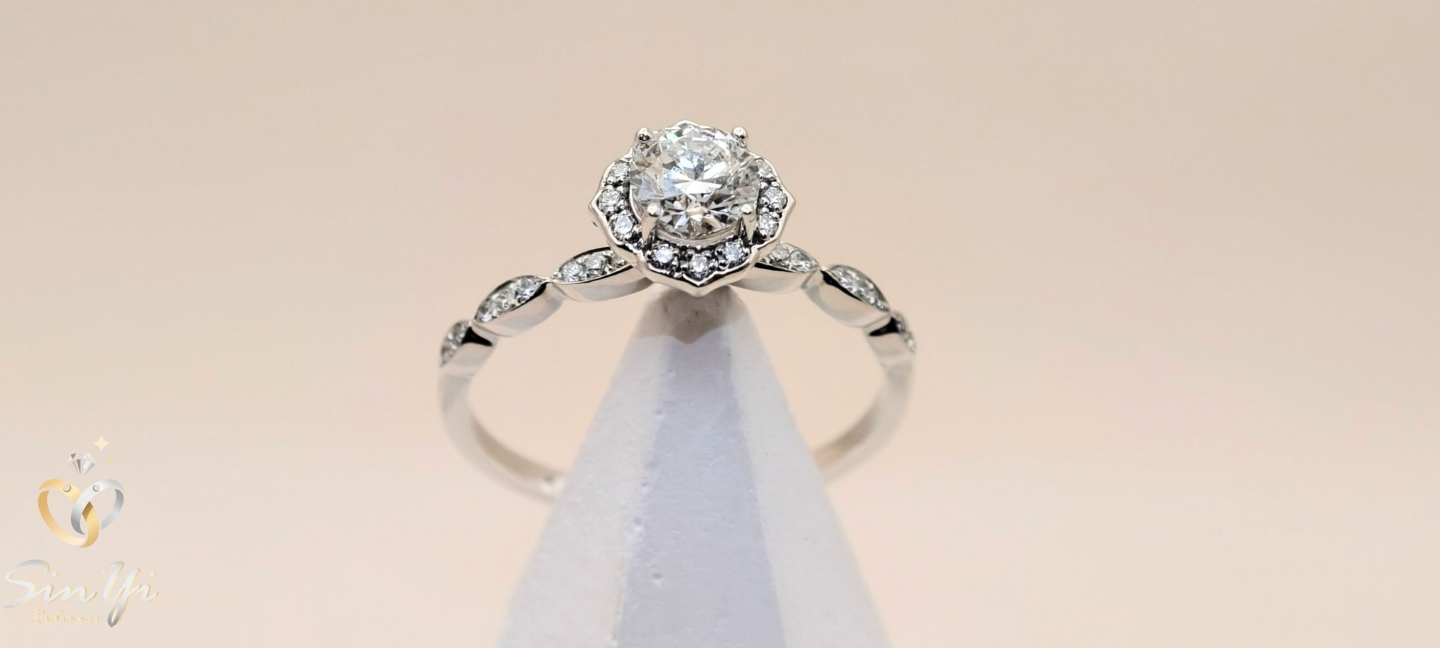 如花冠般環繞的光芒, 襯托中央圓鑽的純粹閃耀。 細緻群鑲設計,讓光線層層折射, 低調卻難以忽視的優雅存在。 不是只為重要場合而存在的戒指。 細緻鑽光與流線戒台, 讓它在日常中也能自然融入穿搭, 舉手投足都多一點精緻感。