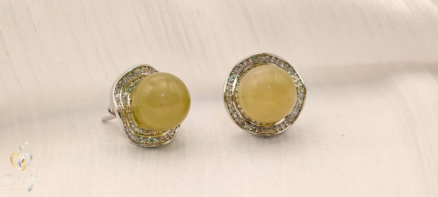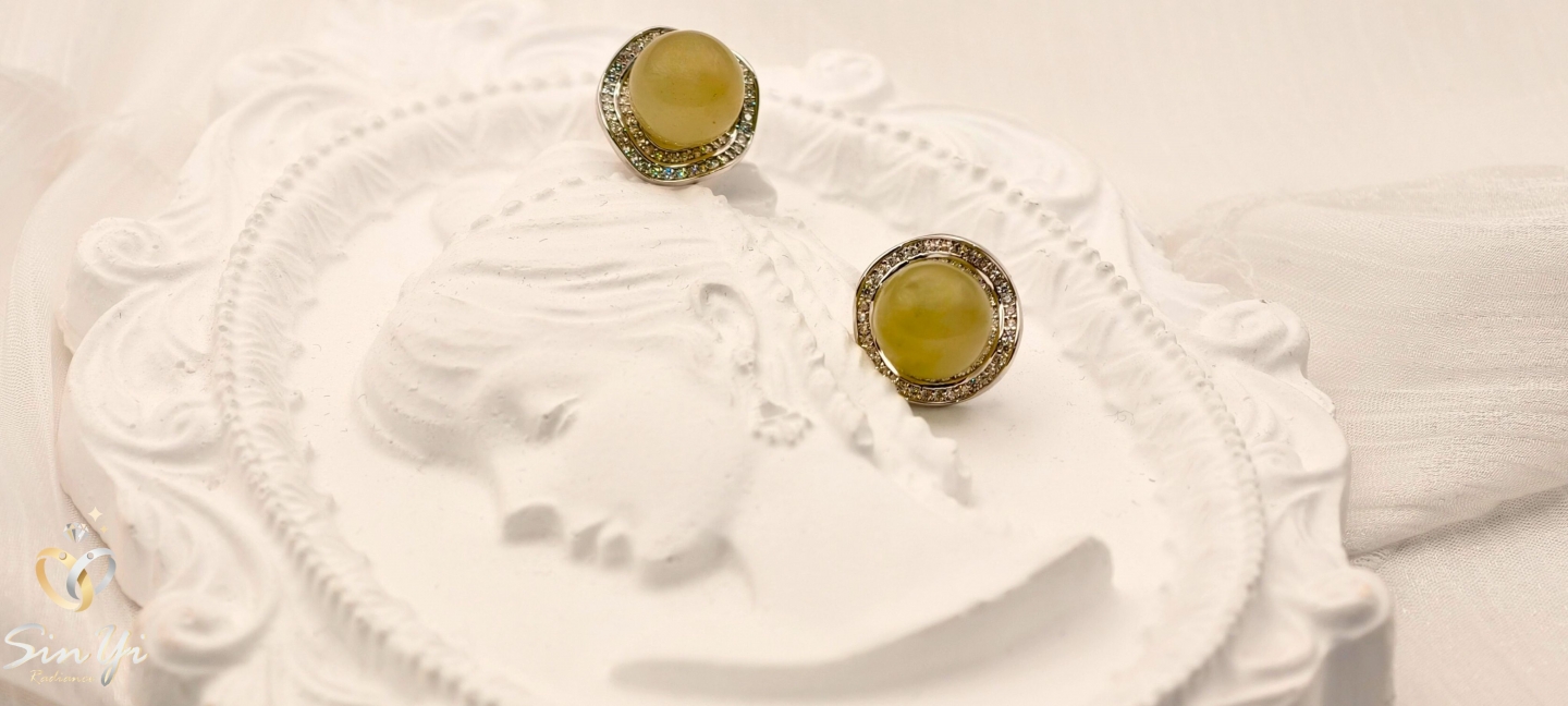極致飽滿主石: 精選大顆、光澤瑩潤的蜜黃色圓珠,色彩如晨曦般溫暖,質感厚實且透光度佳。