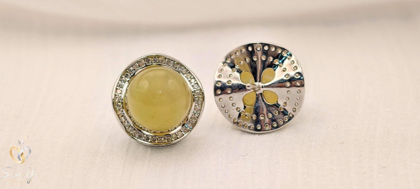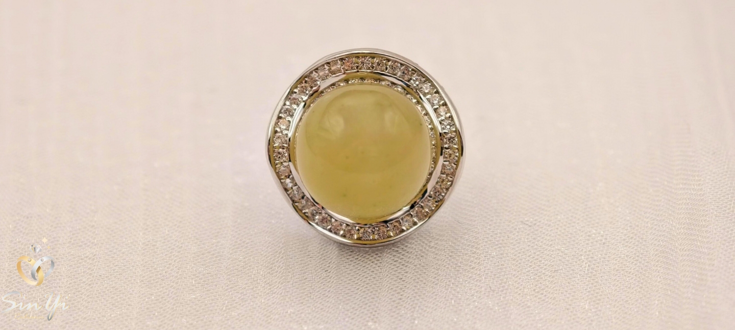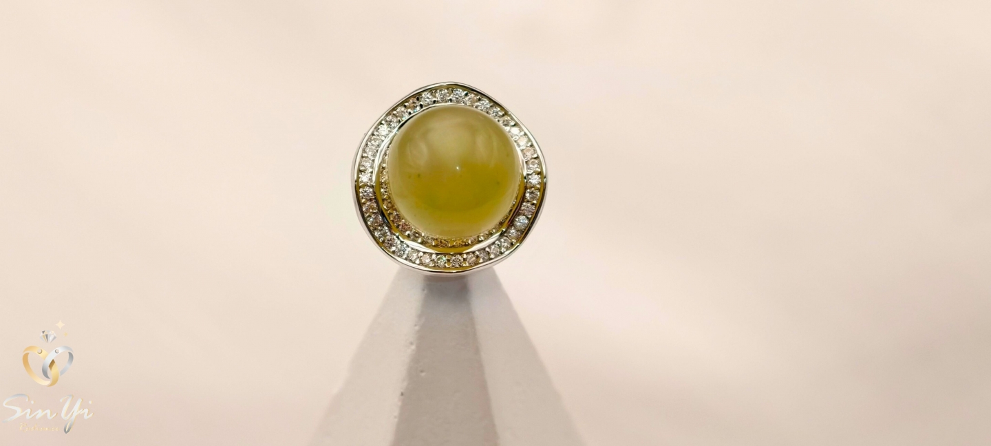 中心圓潤飽滿的蜜黃色主石,象徵著內心的平靜與豐盛;