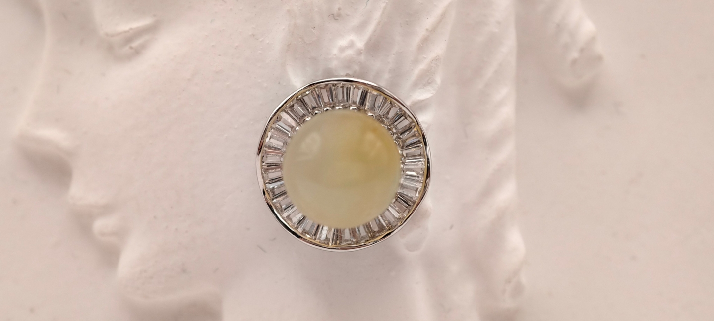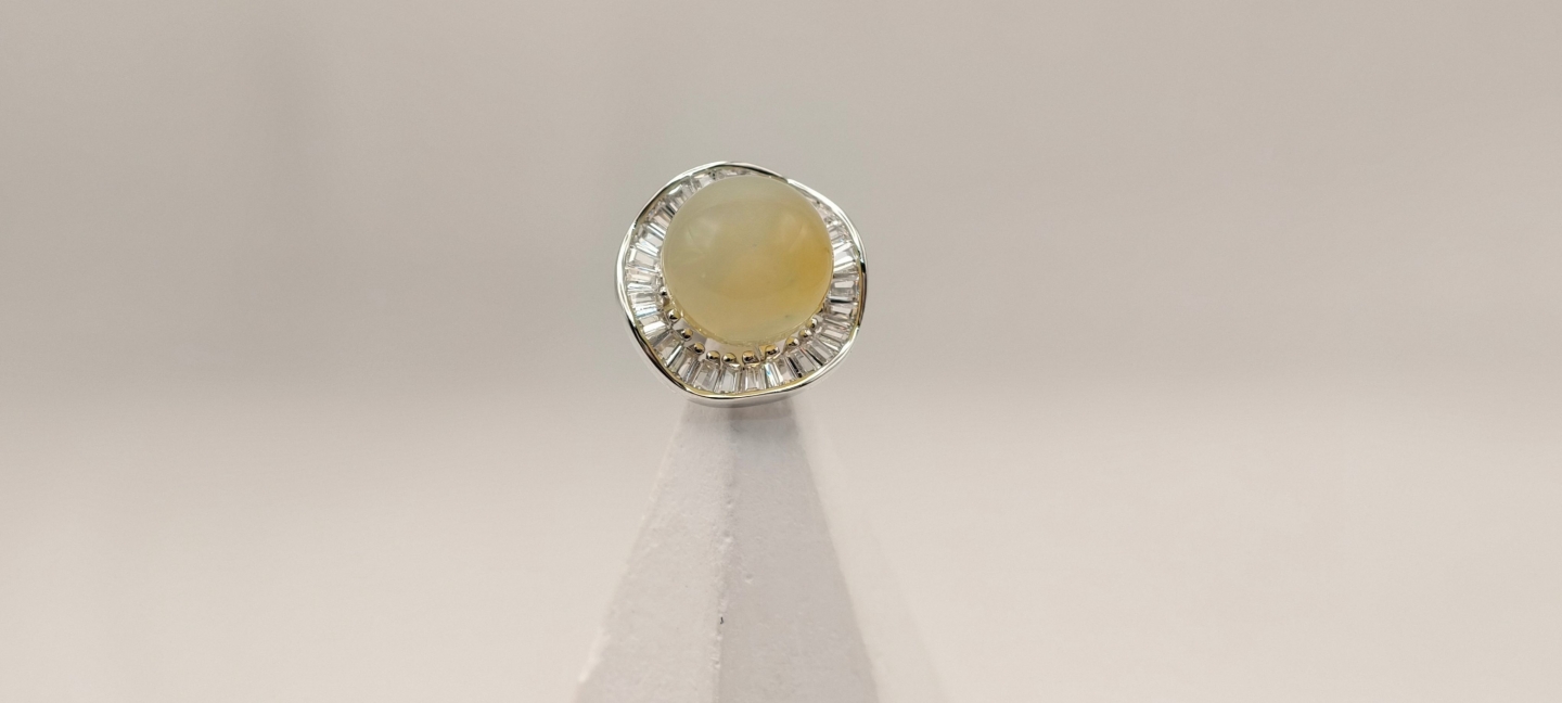知性香檳蜜色: 主石呈現淡淡的蜜蠟色澤,比金黃更內斂,比白色更有深度,是非常襯托亞洲人氣質的「高級色」。