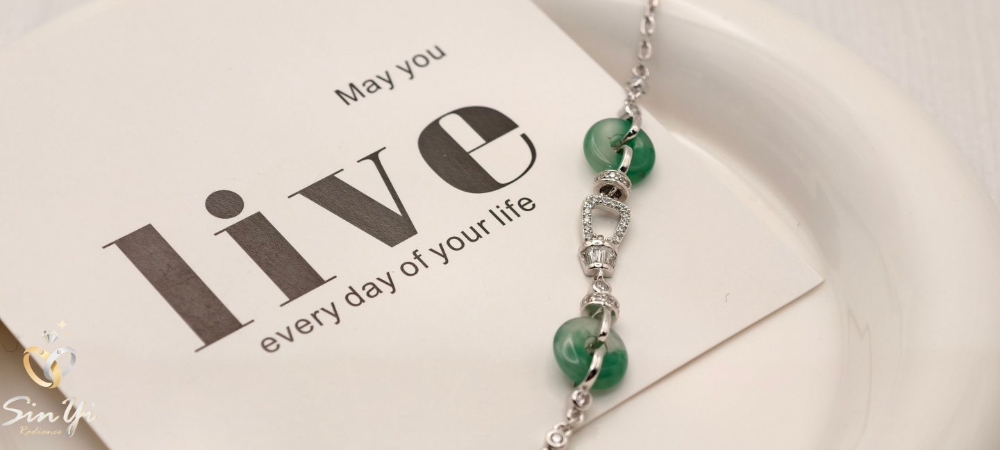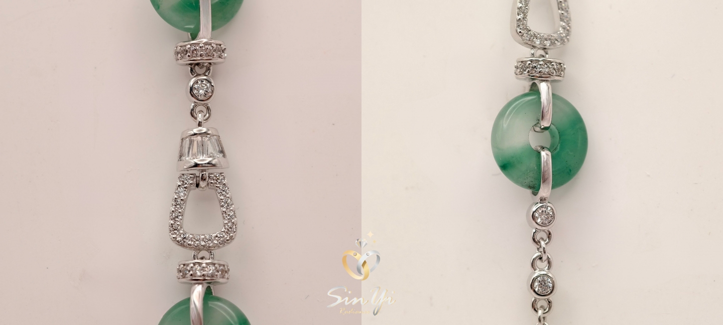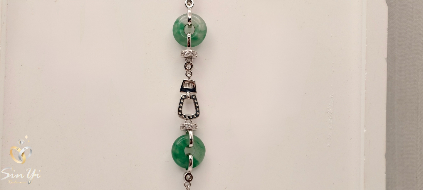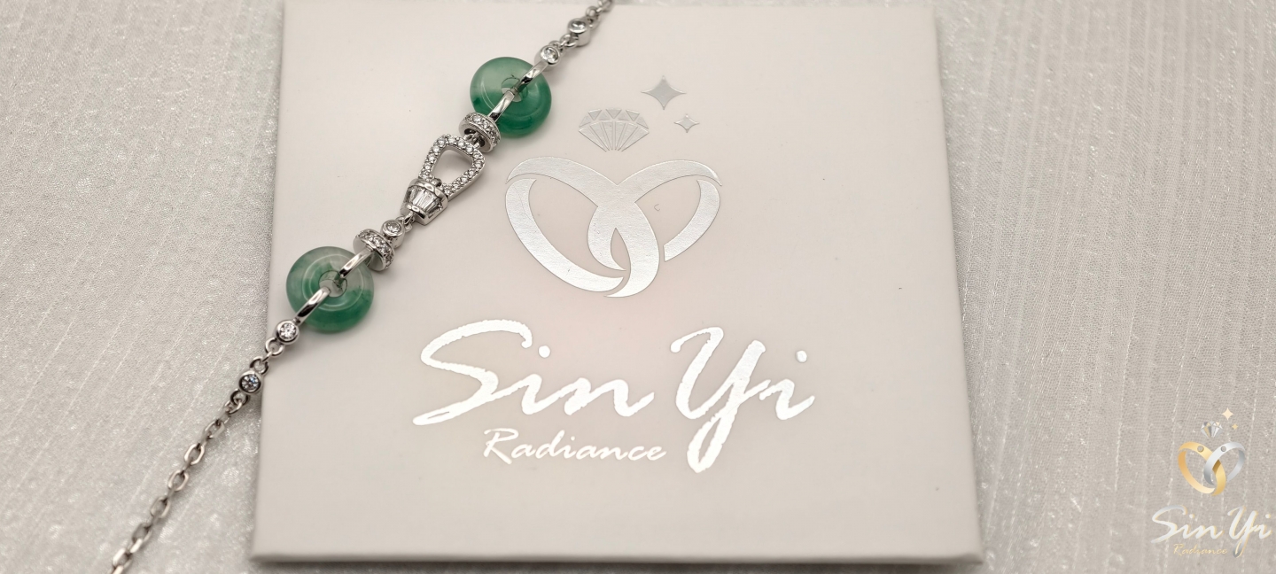 不同於傳統的單一玉飾,我們運用了兩個精巧的非洲翠平安扣,象徵福氣連綿不絕。