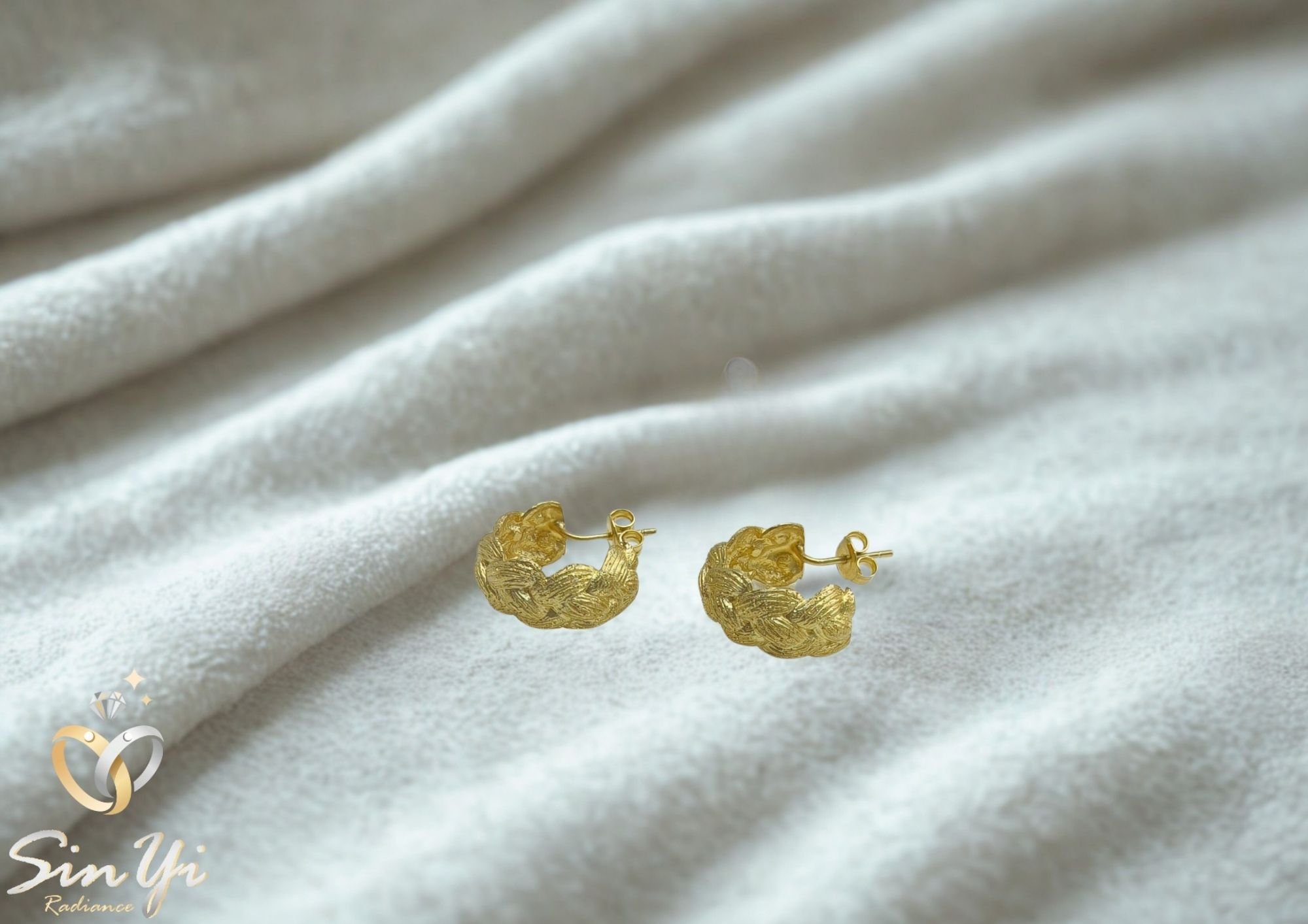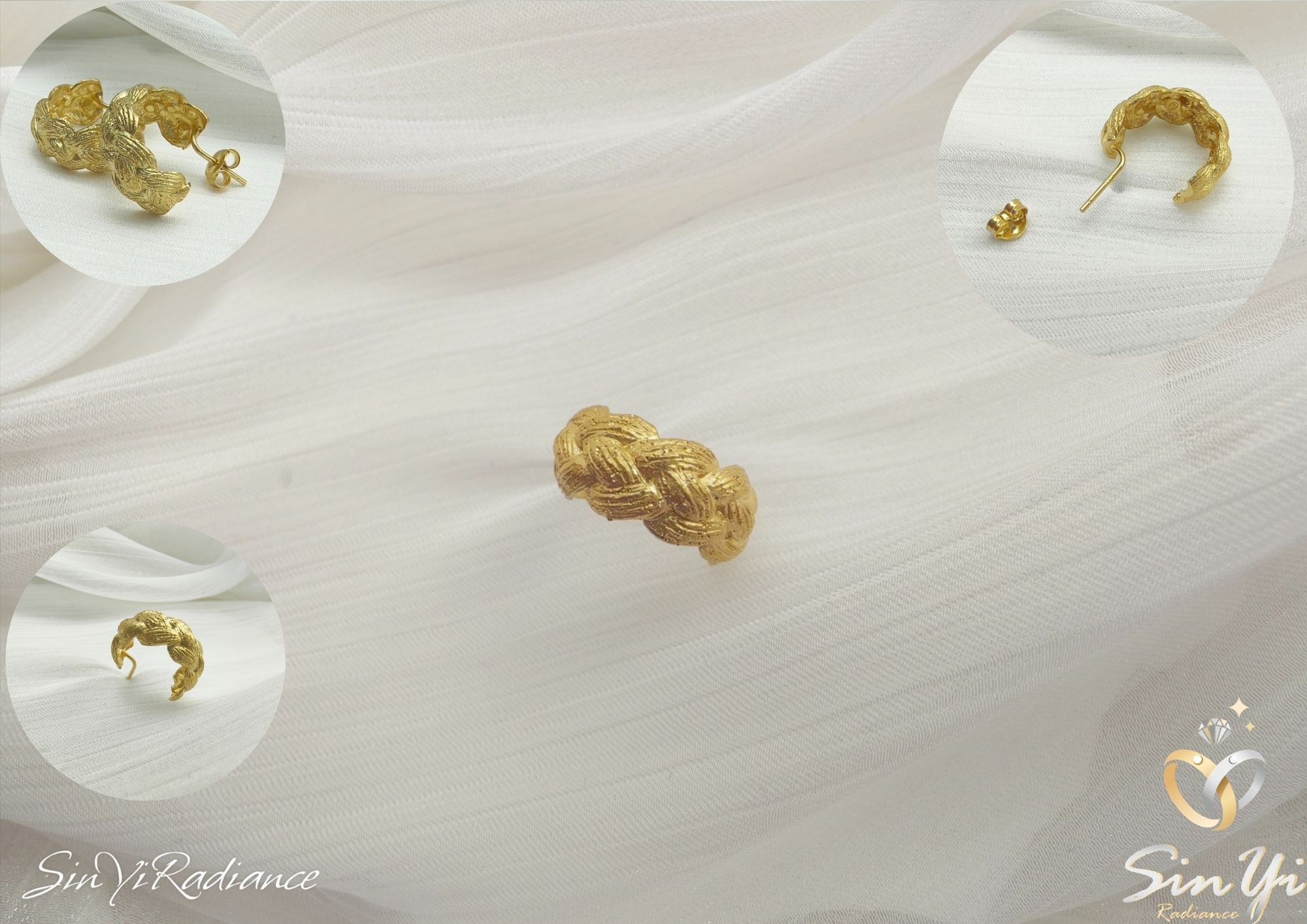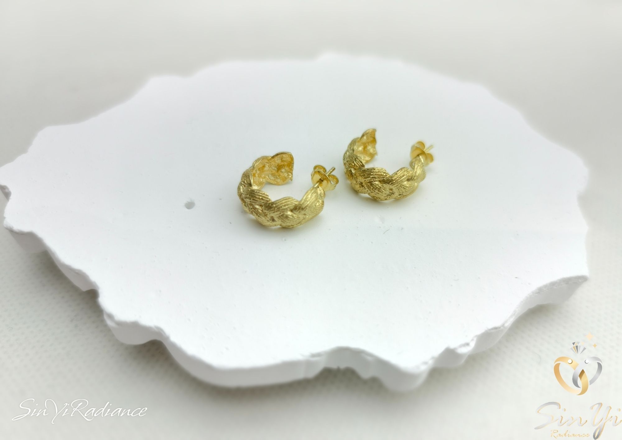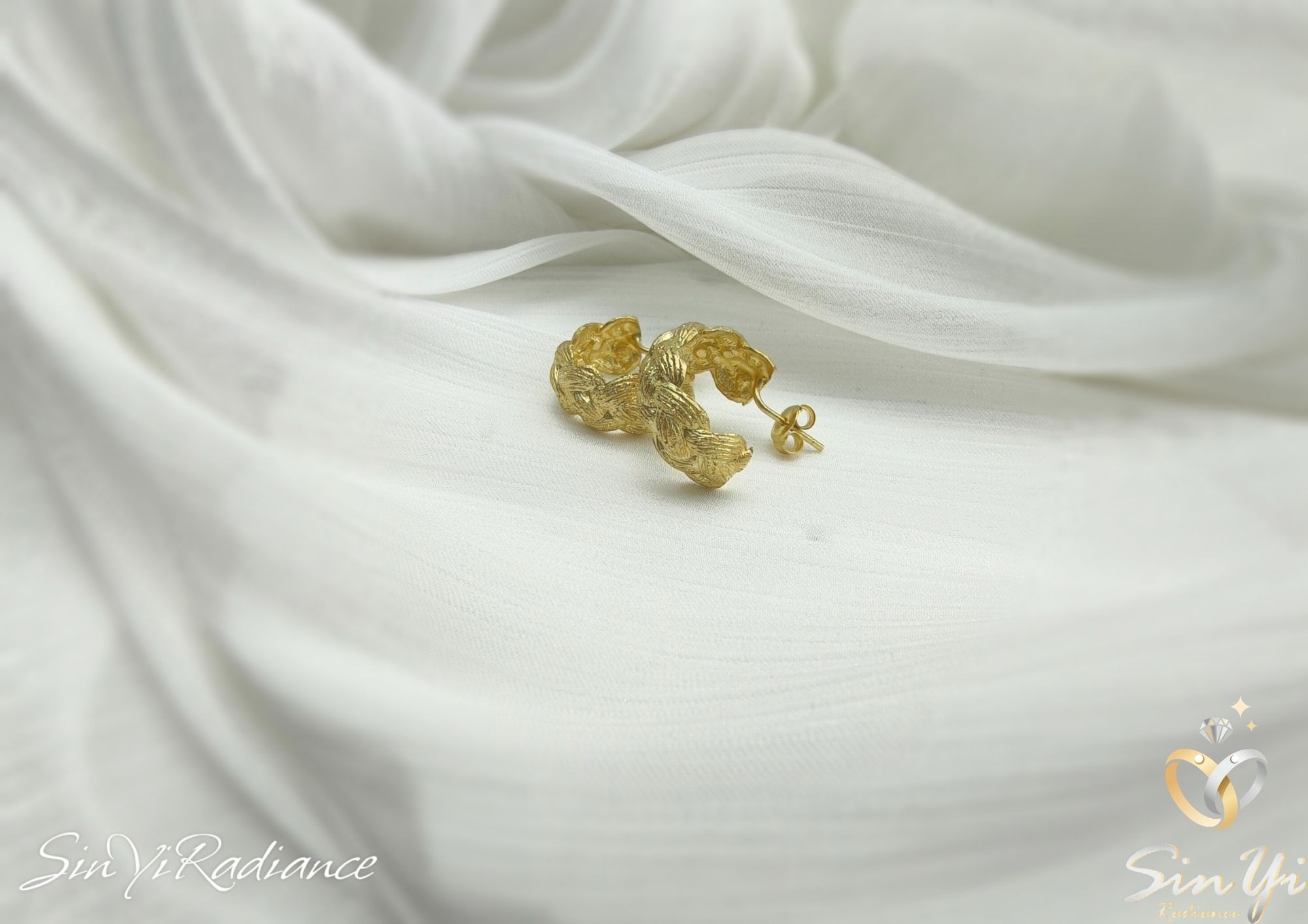靈感源於「編織的溫度」。 將象徵連結與陪伴的編織語彙轉化成金色小圈耳環, 彷彿把細膩的手作溫度鑲進金屬中,呈現一種柔韌、穩定、卻又帶點浪漫的感覺。