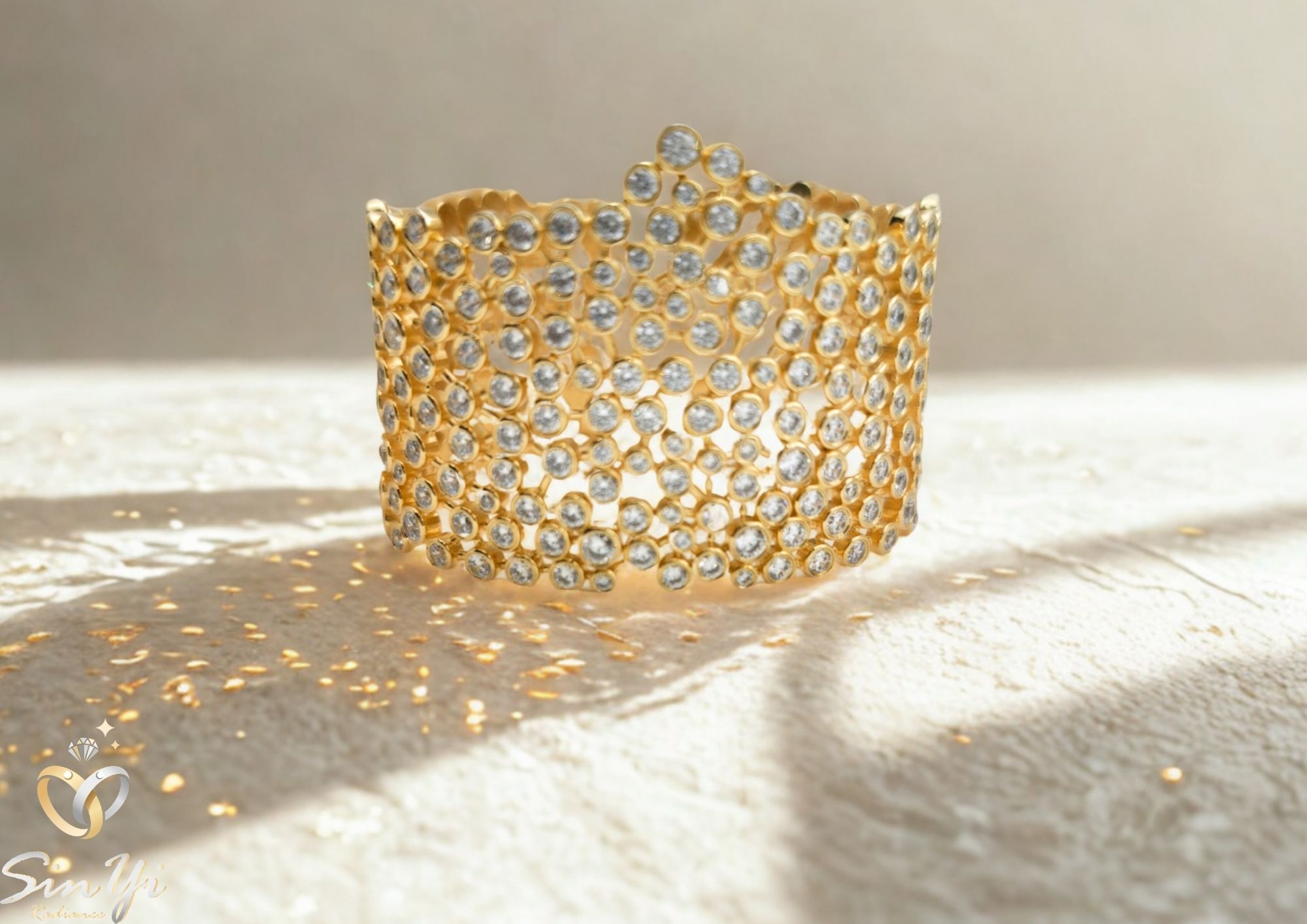 靈感源自皇冠與舞台光影, 以層疊圓鑽鋪滿戒面,構築出如星辰般的華麗曲線。 每一顆鑽石都象徵力量與光芒, 讓佩戴者無論身處何地,都散發出自信與尊榮氣場。