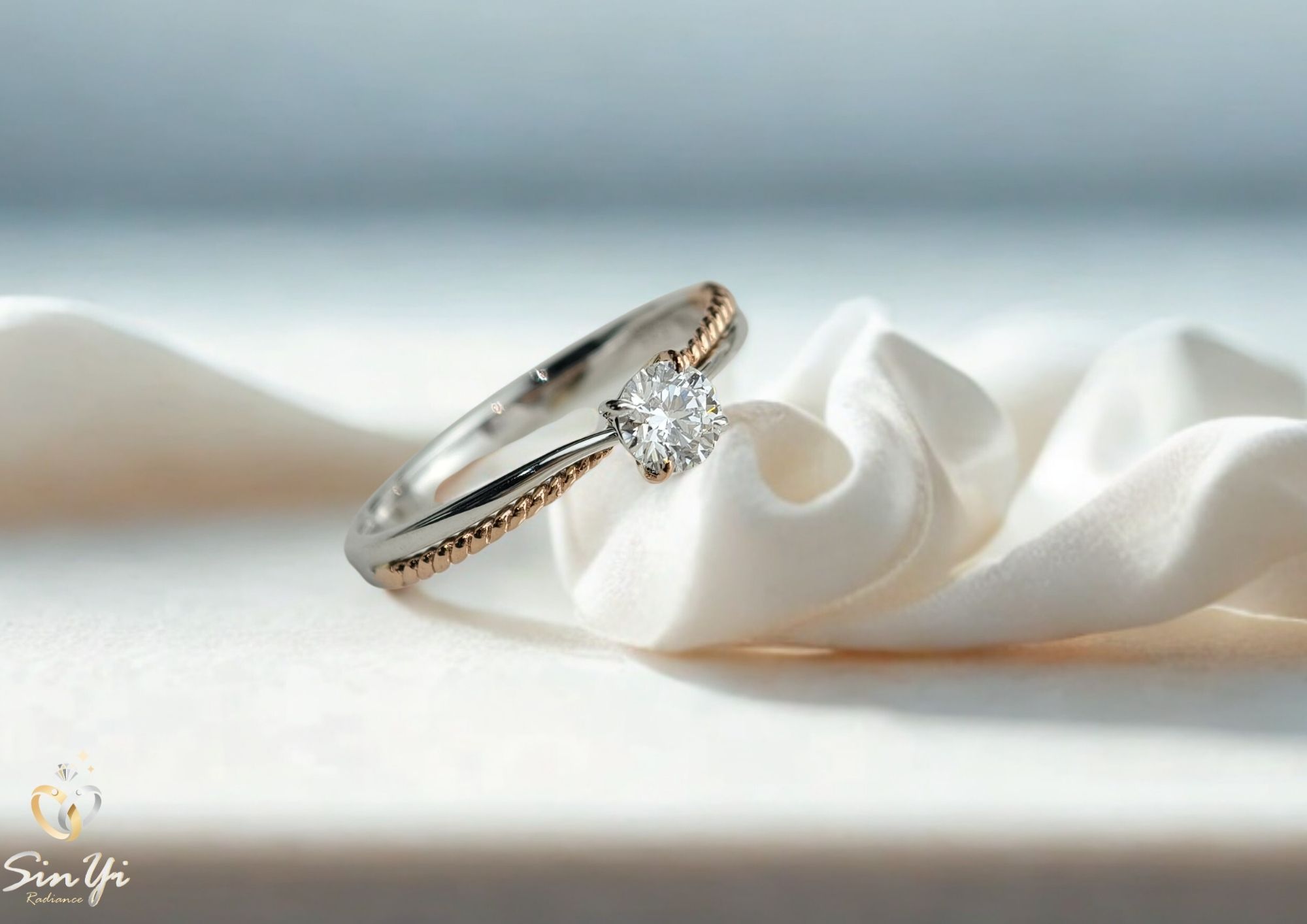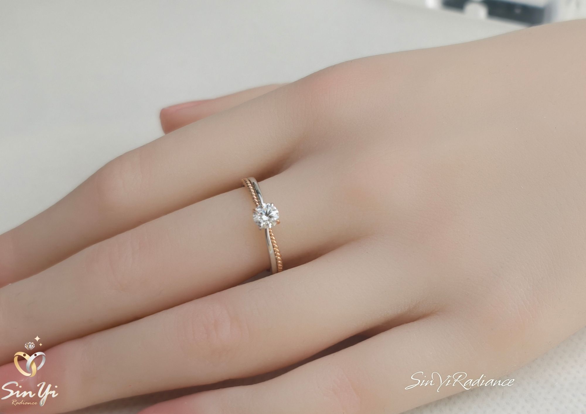 以簡約為基底,加入細膩的雙色工藝, 讓戒指在低調中呈現更豐富的層次。