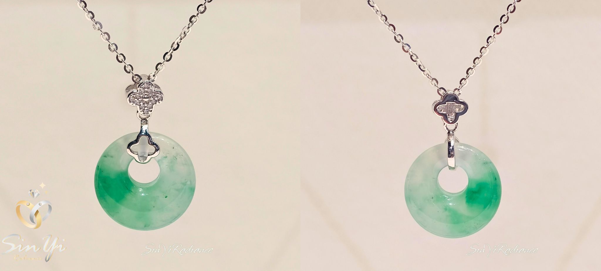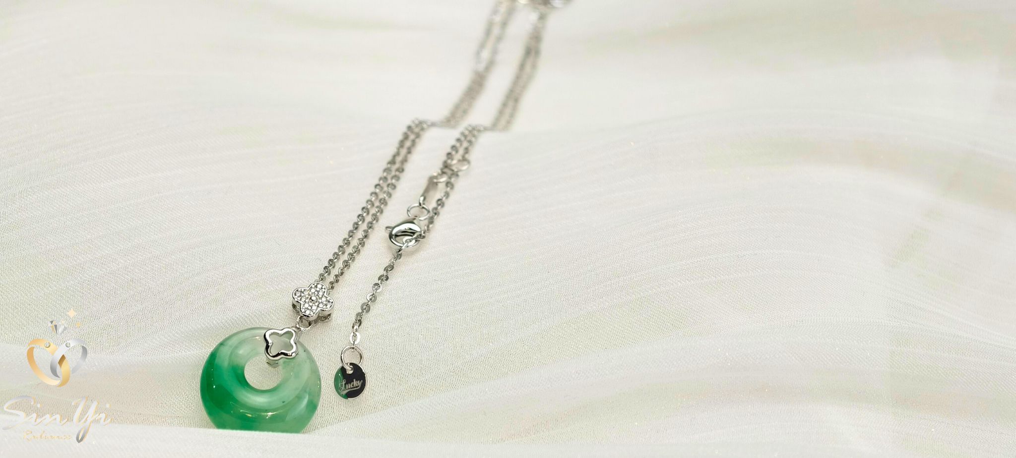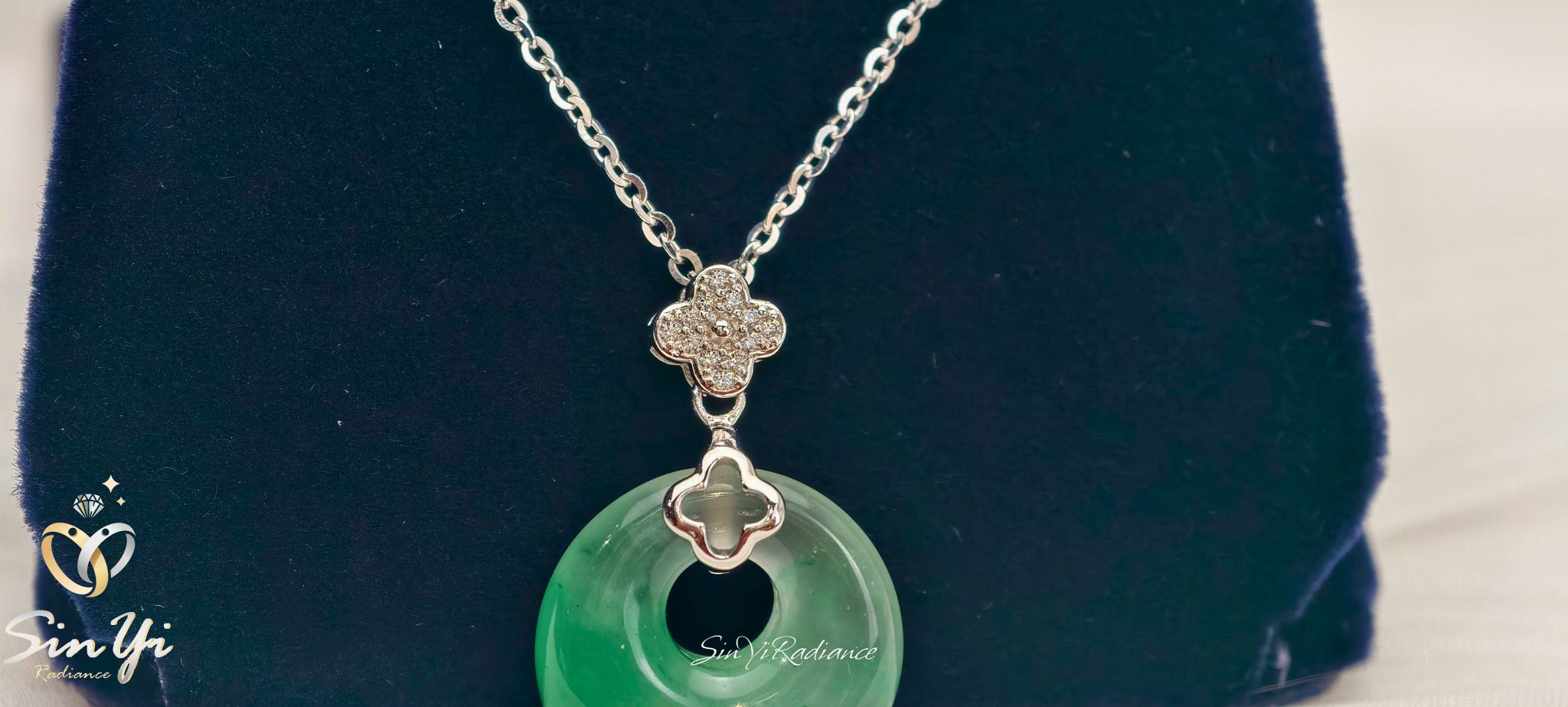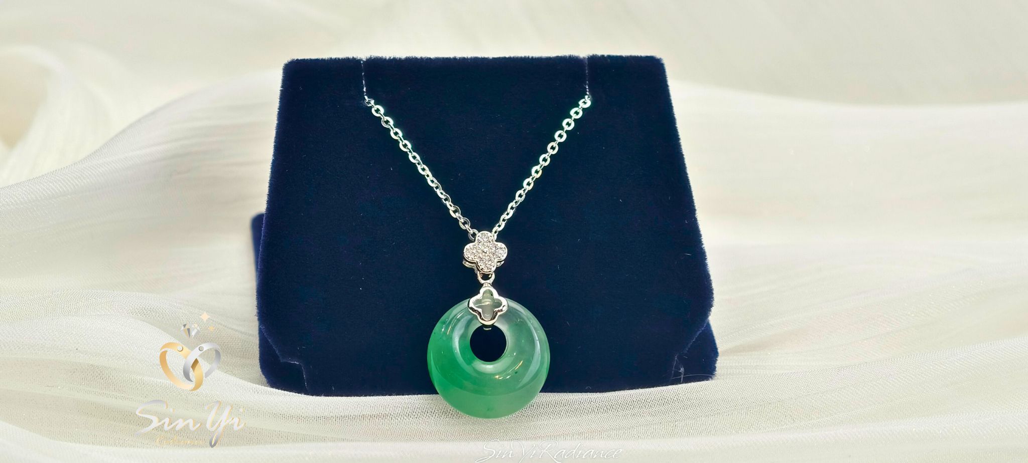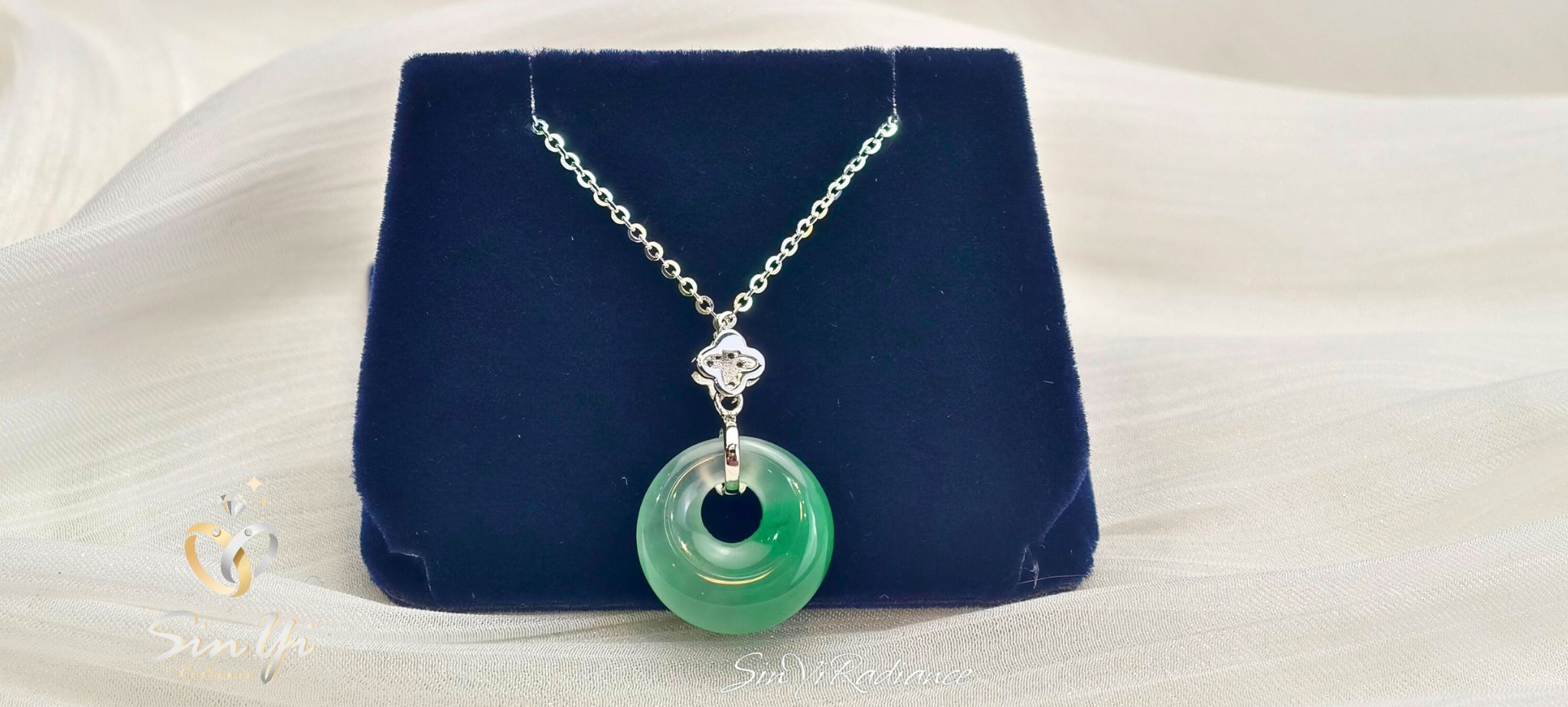 一枚平安扣,承載圓滿與祝福。 精選溫潤非洲翠雕琢而成的平安扣,色澤自然通透, 圓形設計象徵圓融、守護與平安。 上方搭配細緻鑽感花形鑲座與銀色鍊身, 為經典玉石注入現代輕珠寶氣息。 低調卻富含寓意,適合日常長時間佩戴, 不僅是一件飾品,更是一份隨身的祝福與心意。